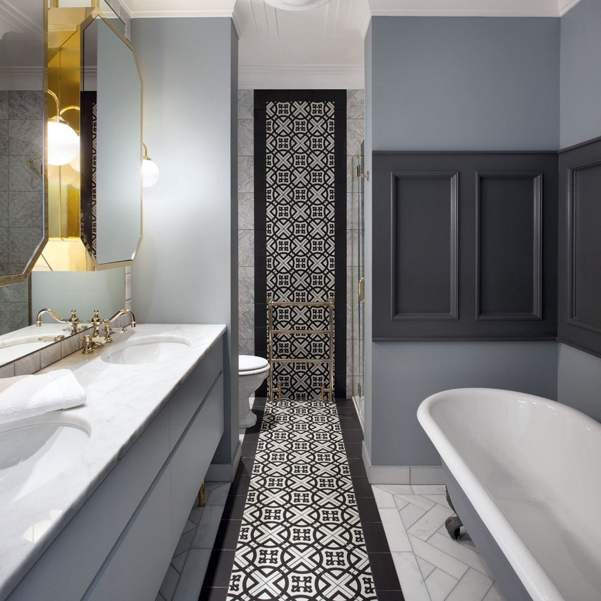 Geometrische Muster Geometrische Muster sind ein aufstrebender Trend bei Fliesen für das Badezimmer im Jahr 2019. Diese Muster verleihen dem Masterbadezimmer einen modernen und dynamischen Look. Während sie in neutralen Farben wie Grau und Weiß erhältlich sind, können sie auch in kräftigen Farben wie Blau oder Grün gewählt werden, um einen auffälligen Akzent zu setzen. Geometrische Muster sind eine großartige Möglichkeit, dem Badezimmer Persönlichkeit zu verleihen und es von anderen Räumen im Haus abzuheben.